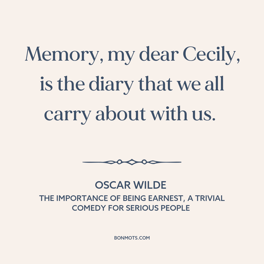 Memory, my dear Cecily, is the diary that we all carry about with us.
