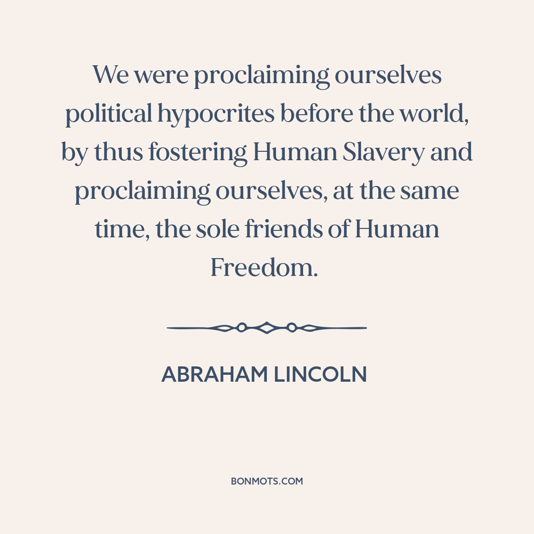 We were proclaiming ourselves political hypocrites before the world, by thus fostering Human Slavery and proclaiming ourselves, at the same time, the sole friends of Human Freedom.