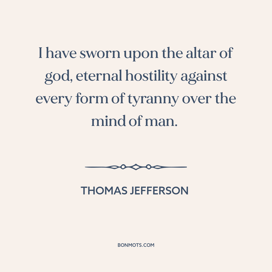I have sworn upon the altar of god, eternal hostility against every form of tyranny over the mind of man.