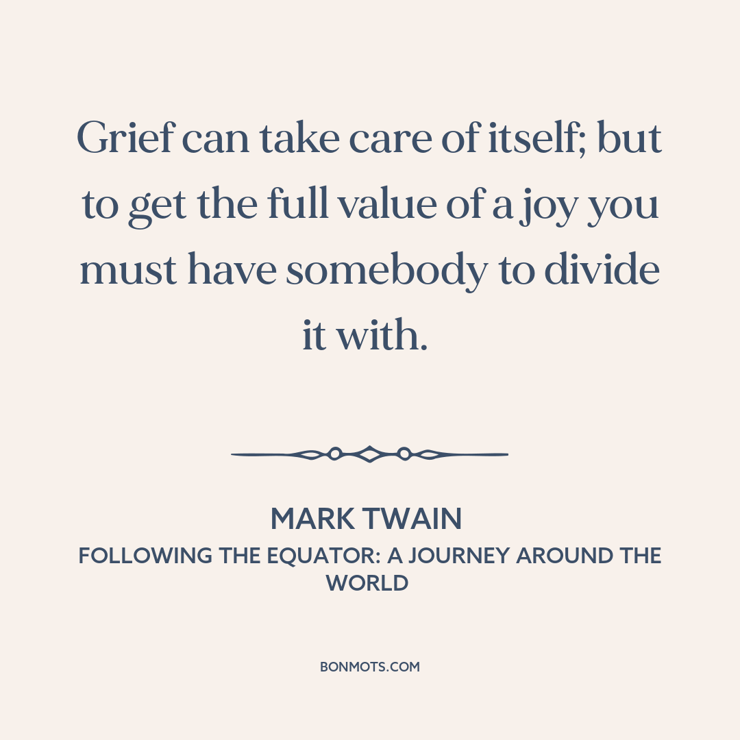 Grief can take care of itself; but to get the full value of a joy you must have somebody to divide it with.