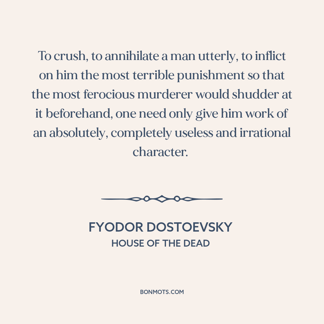 To crush, to annihilate a man utterly, to inflict on him the most terrible punishment so that the most ferocious murderer would shudder at it beforehand, one need only give him work of an absolutely, completely useless and irrational character.