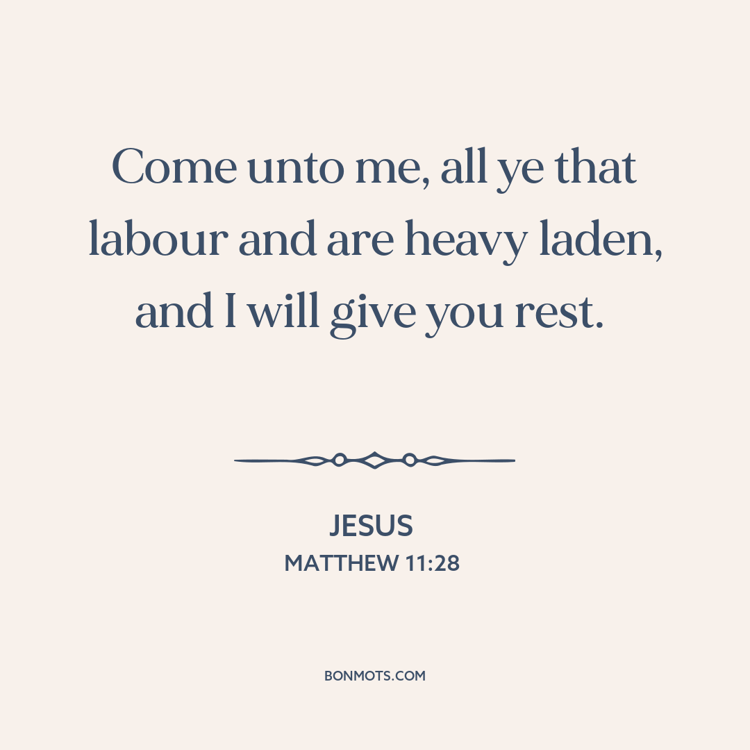 Come unto me, all ye that labour and are heavy laden, and I will give you rest.