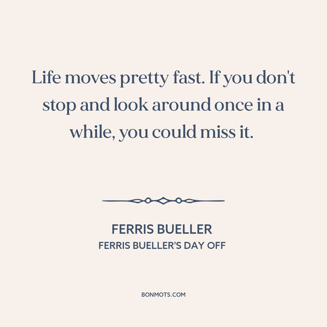 Life moves pretty fast. If you don't stop and look around once in a while, you could miss it.