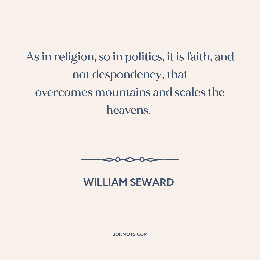 As in religion, so in politics, it is faith, and not despondency, that overcomes mountains and scales the heavens.