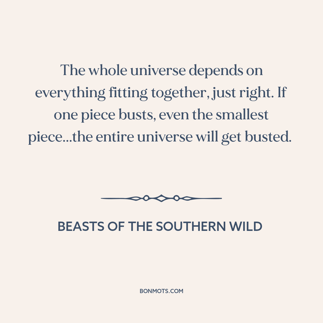 The whole universe depends on everything fitting together, just right. If one piece busts, even the smallest piece...the entire universe will get busted.