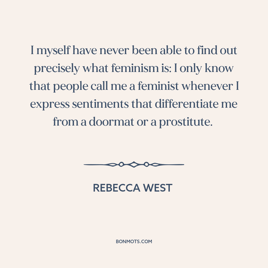I myself have never been able to find out precisely what feminism is: I only know that people call me a feminist whenever I express sentiments that differentiate me from a doormat or a prostitute.