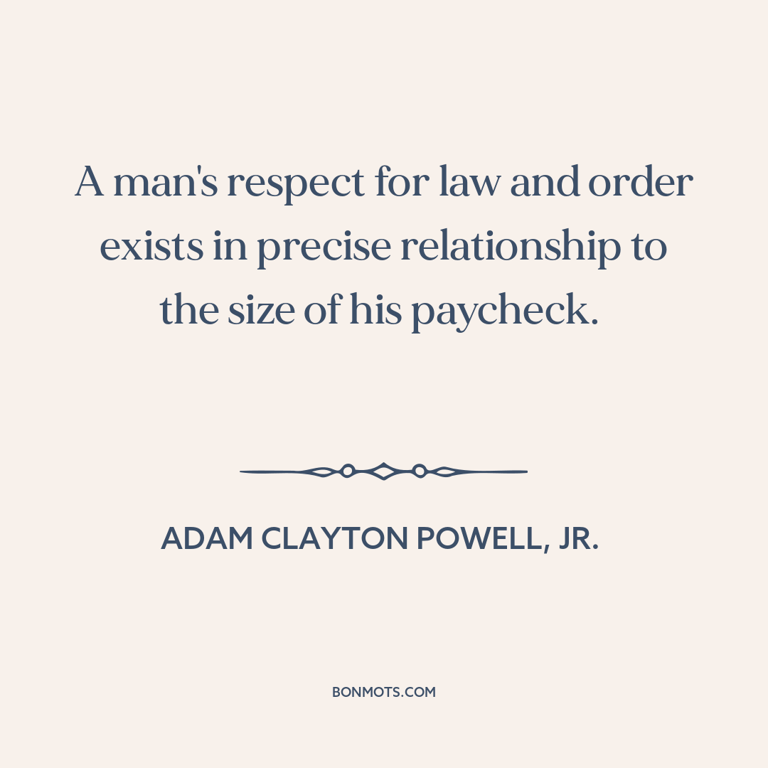 A man's respect for law and order exists in precise relationship to the size of his paycheck.
