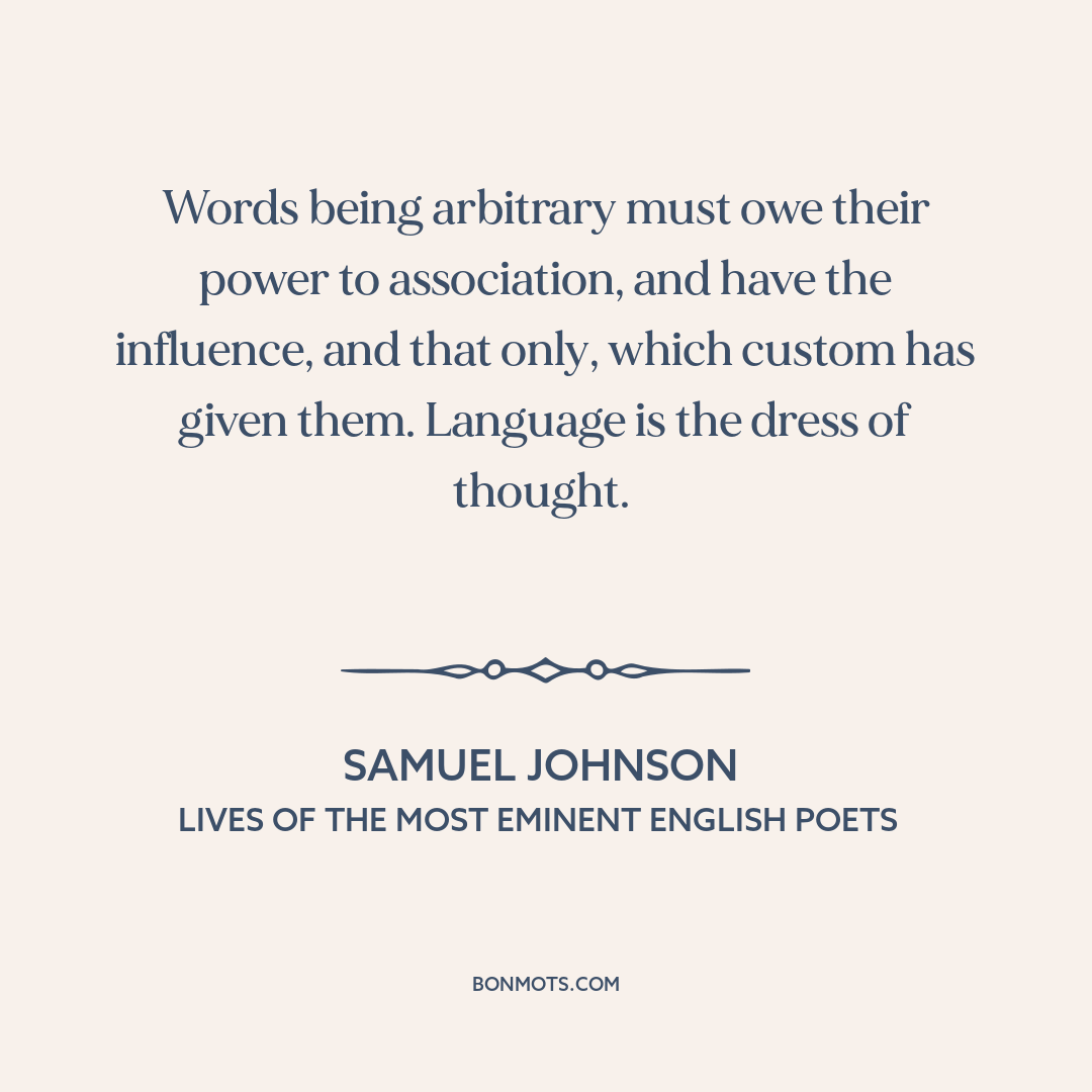 Words being arbitrary must owe their power to association, and have the influence, and that only, which custom has given them. Language is the dress of thought.