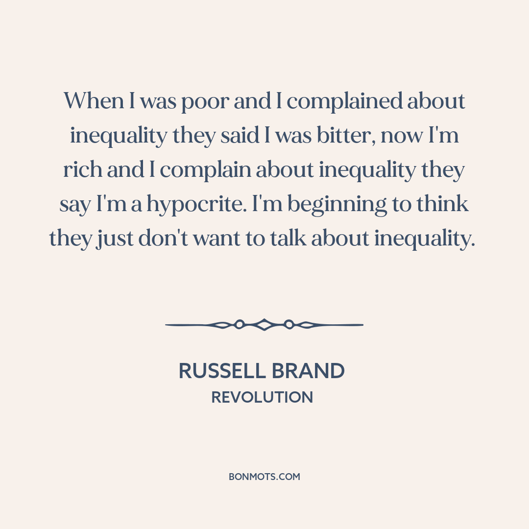 When I was poor and I complained about inequality they said I was bitter, now I'm rich and I complain about inequality they say I'm a hypocrite. I'm beginning to think they just don't want to talk about inequality.