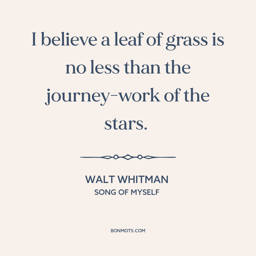 I believe a leaf of grass is no less than the journey-work of the stars.