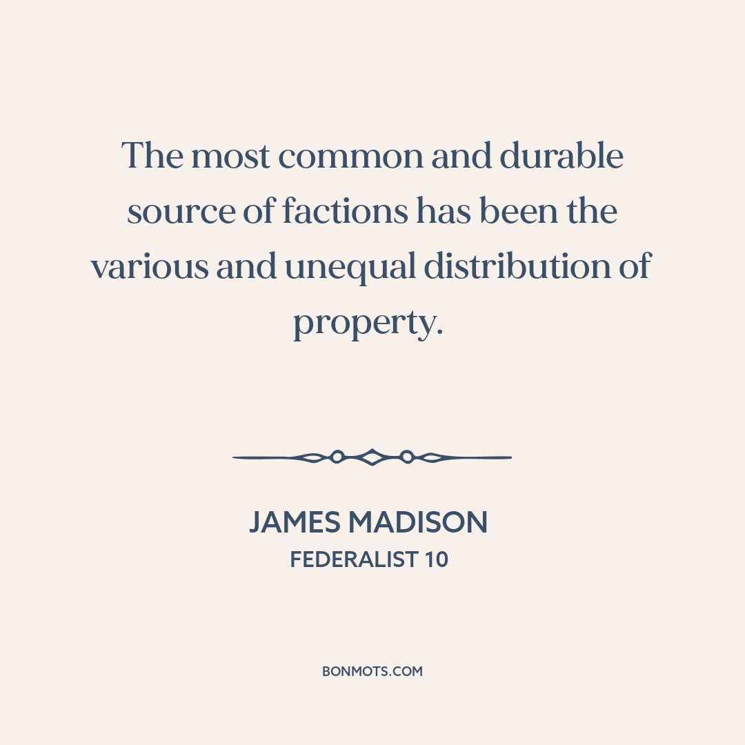 The most common and durable source of factions has been the various and unequal distribution of property.