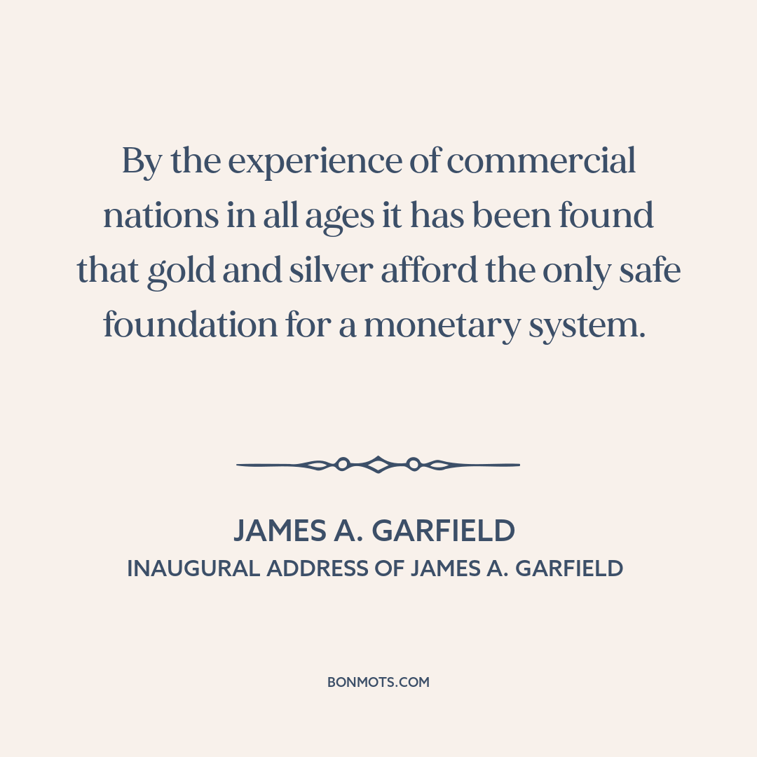 By the experience of commercial nations in all ages it has been found that gold and silver afford the only safe foundation for a monetary system.