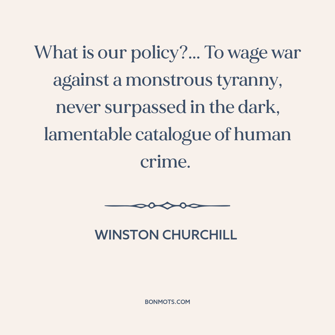 What is our policy?... To wage war against a monstrous tyranny, never surpassed in the dark, lamentable catalogue of human crime.