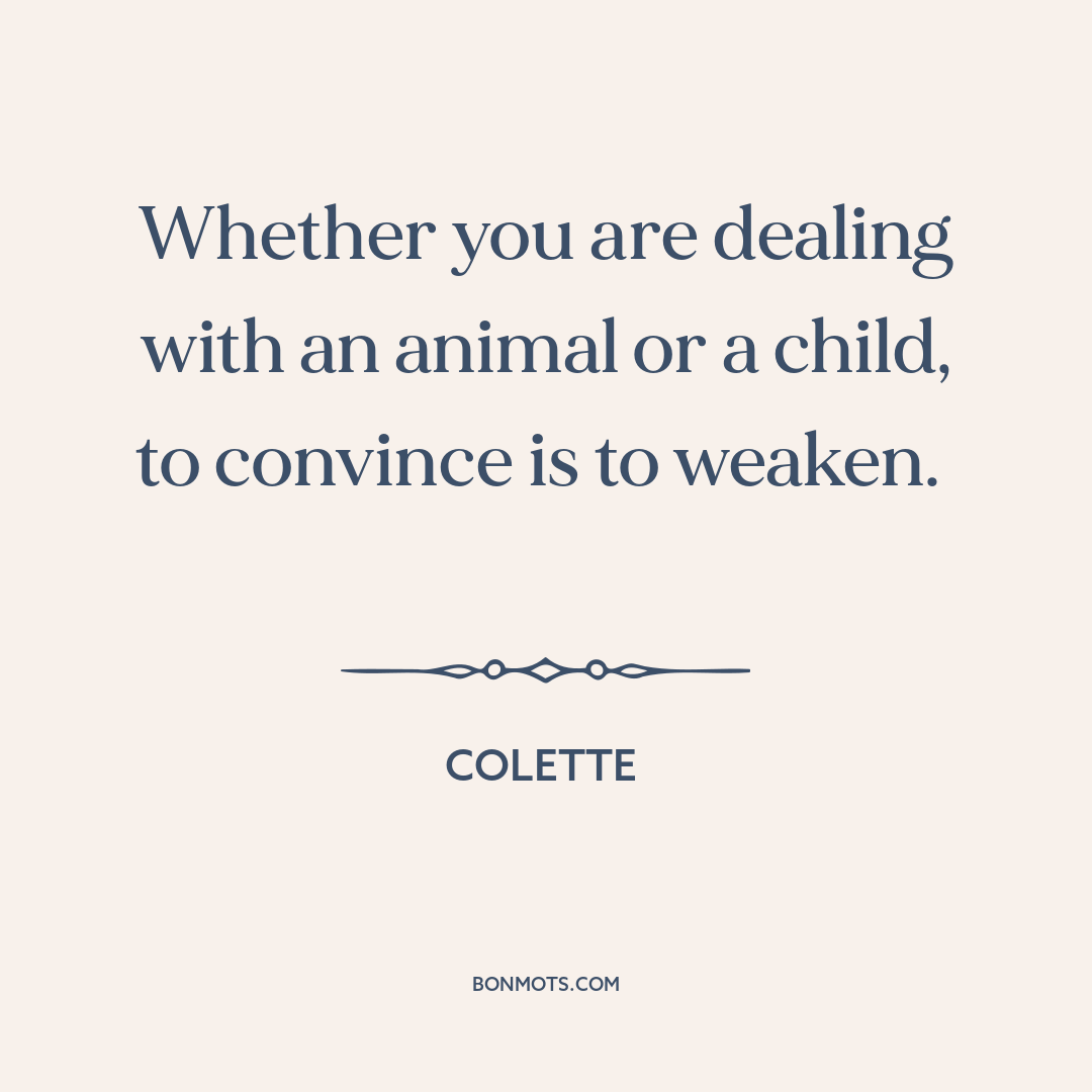 Whether you are dealing with an animal or a child, to convince is to weaken.