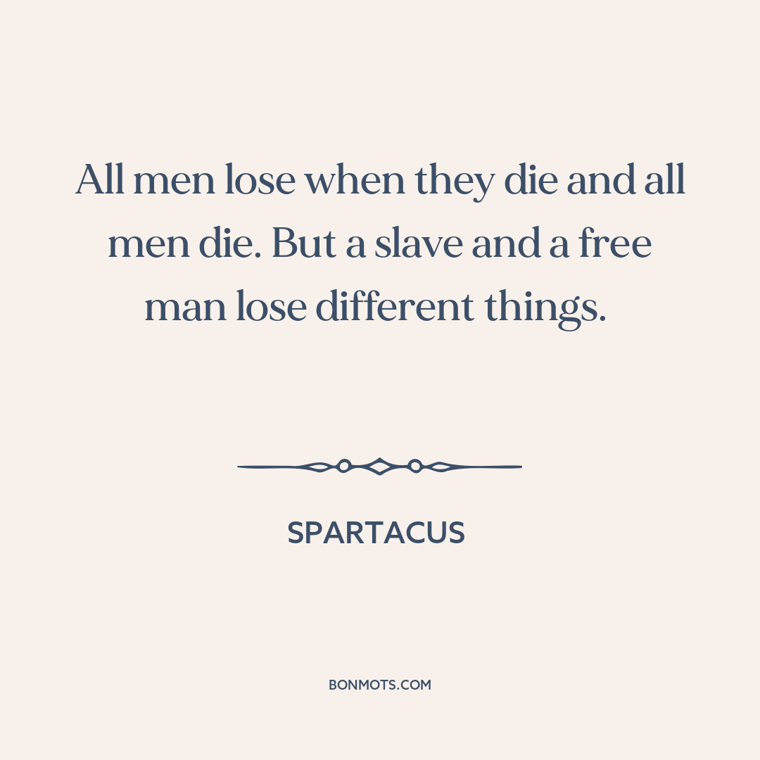 All men lose when they die and all men die. But a slave and a free man lose different things.