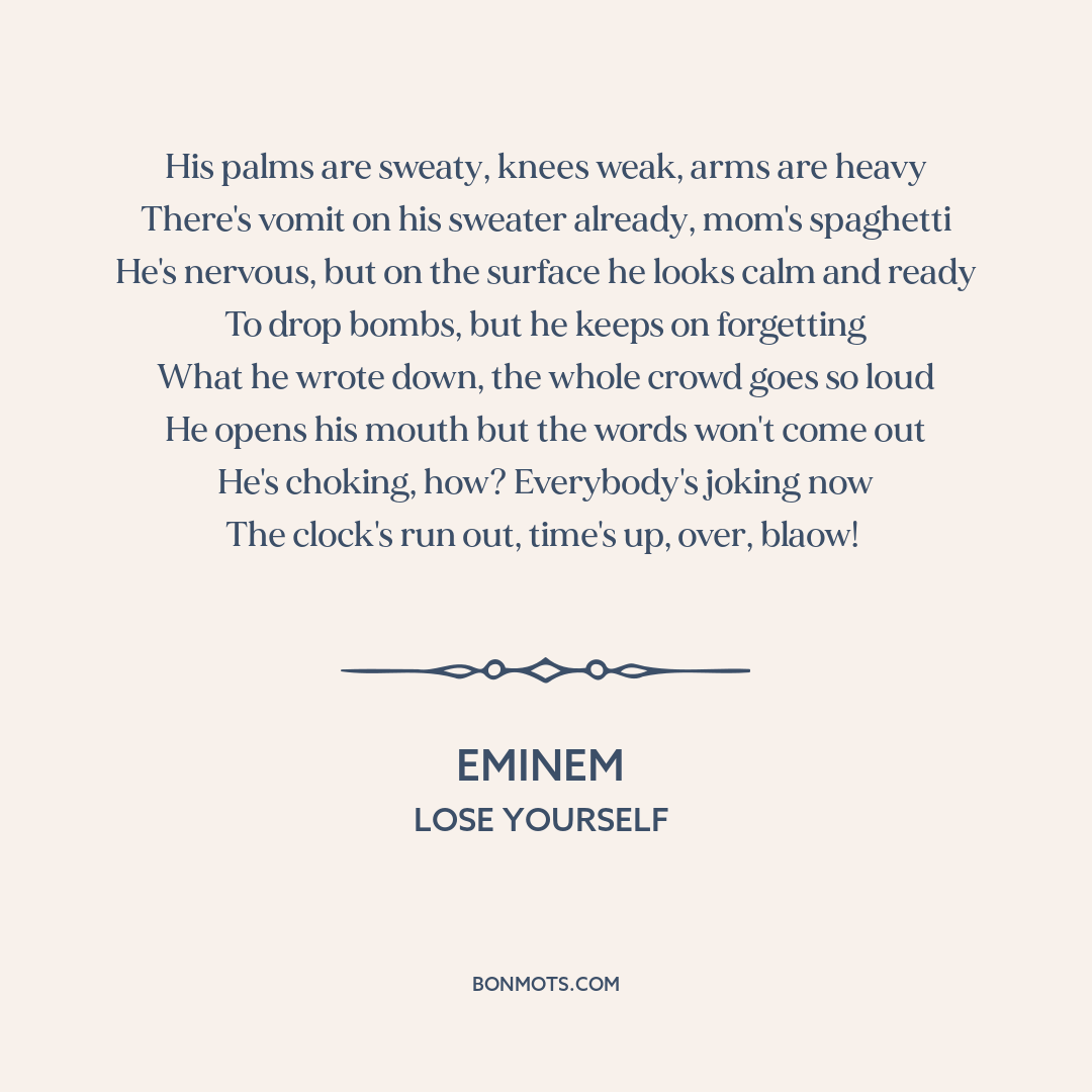"Lose Yourself." 8 Mile. Directed by Curtis Hanson, performed by Eminem, Universal Pictures, 2002.