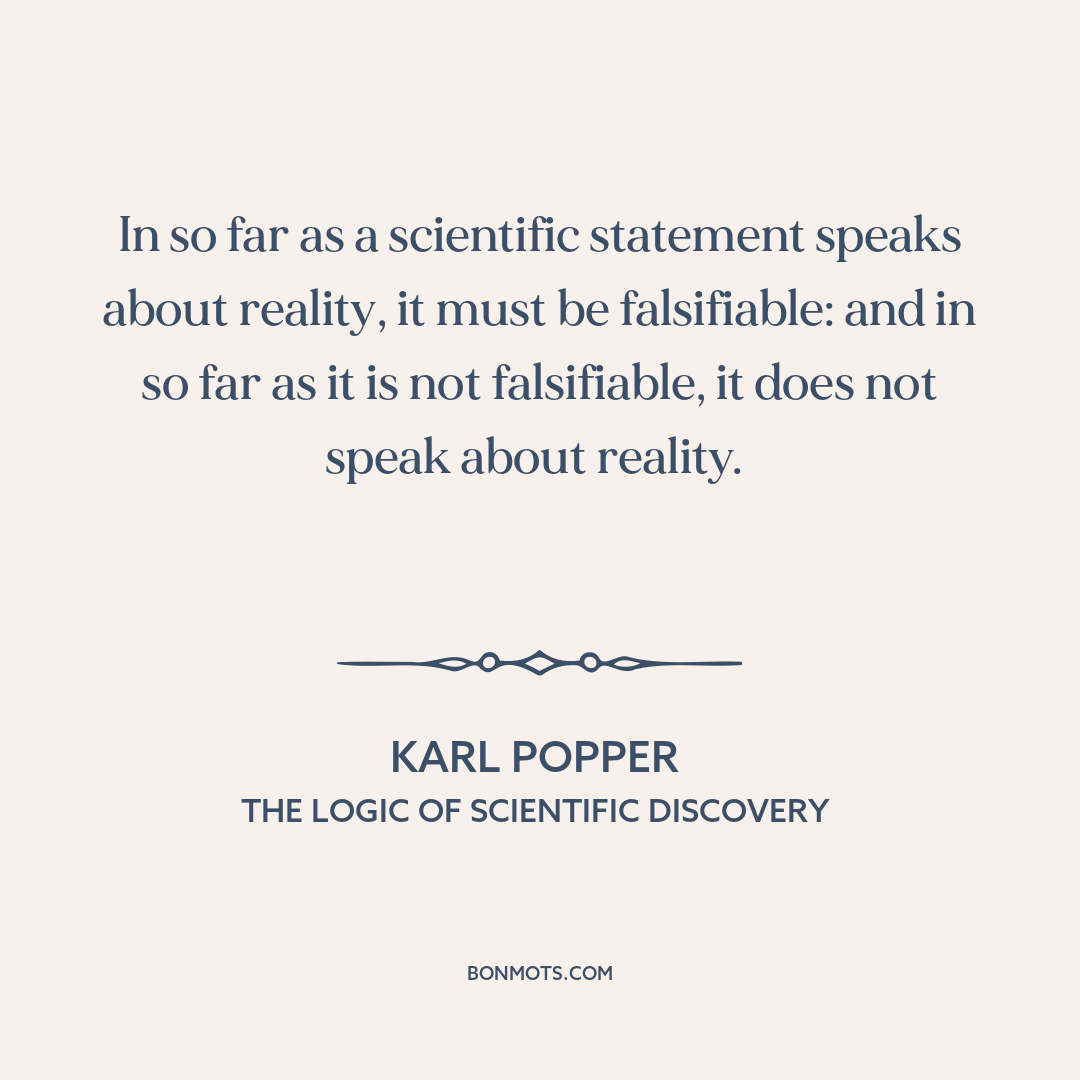 In so far as a scientific statement speaks about reality, it must be falsifiable: and in so far as it is not falsifiable, it does not speak about reality.
