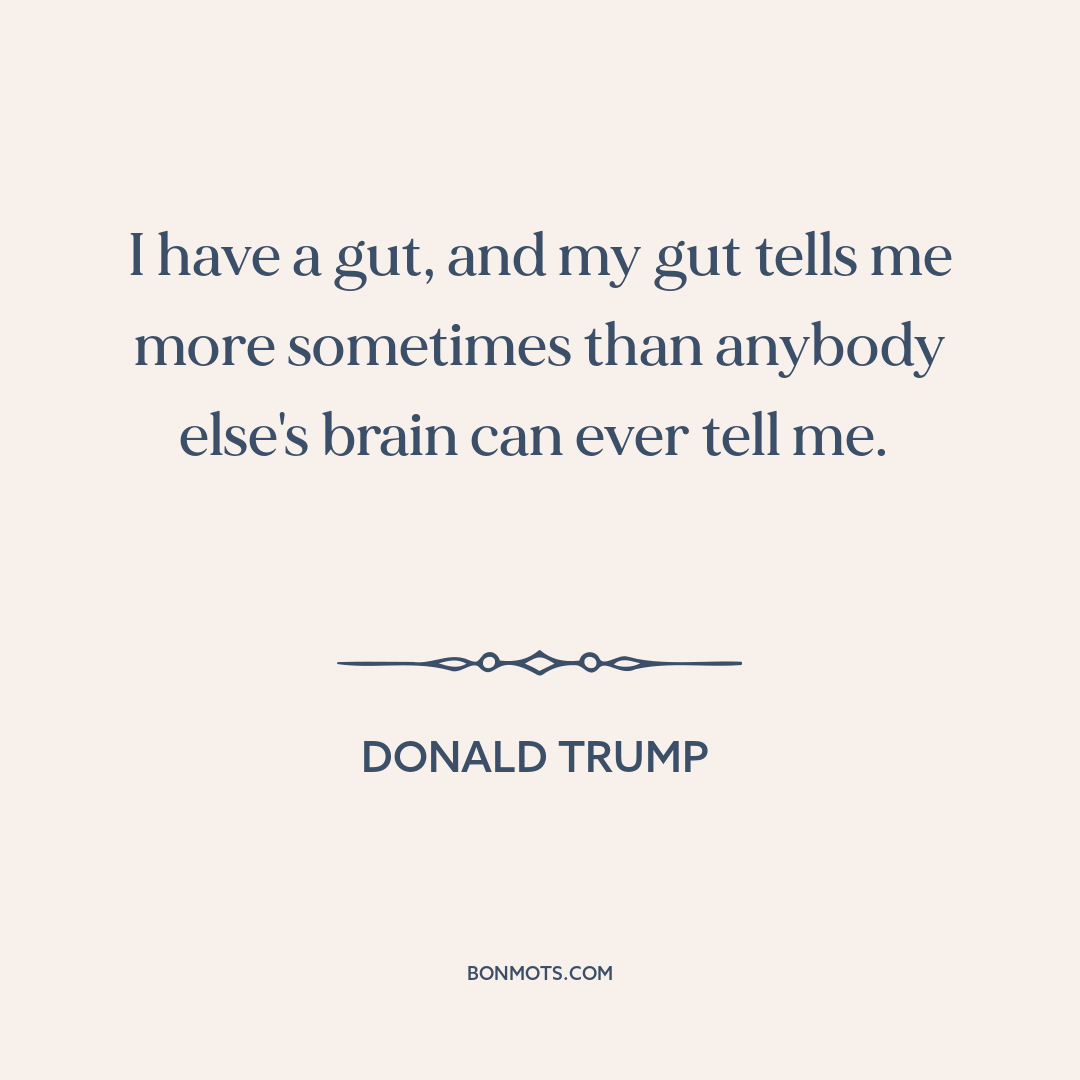 I have a gut, and my gut tells me more sometimes than anybody else's brain can ever tell me.