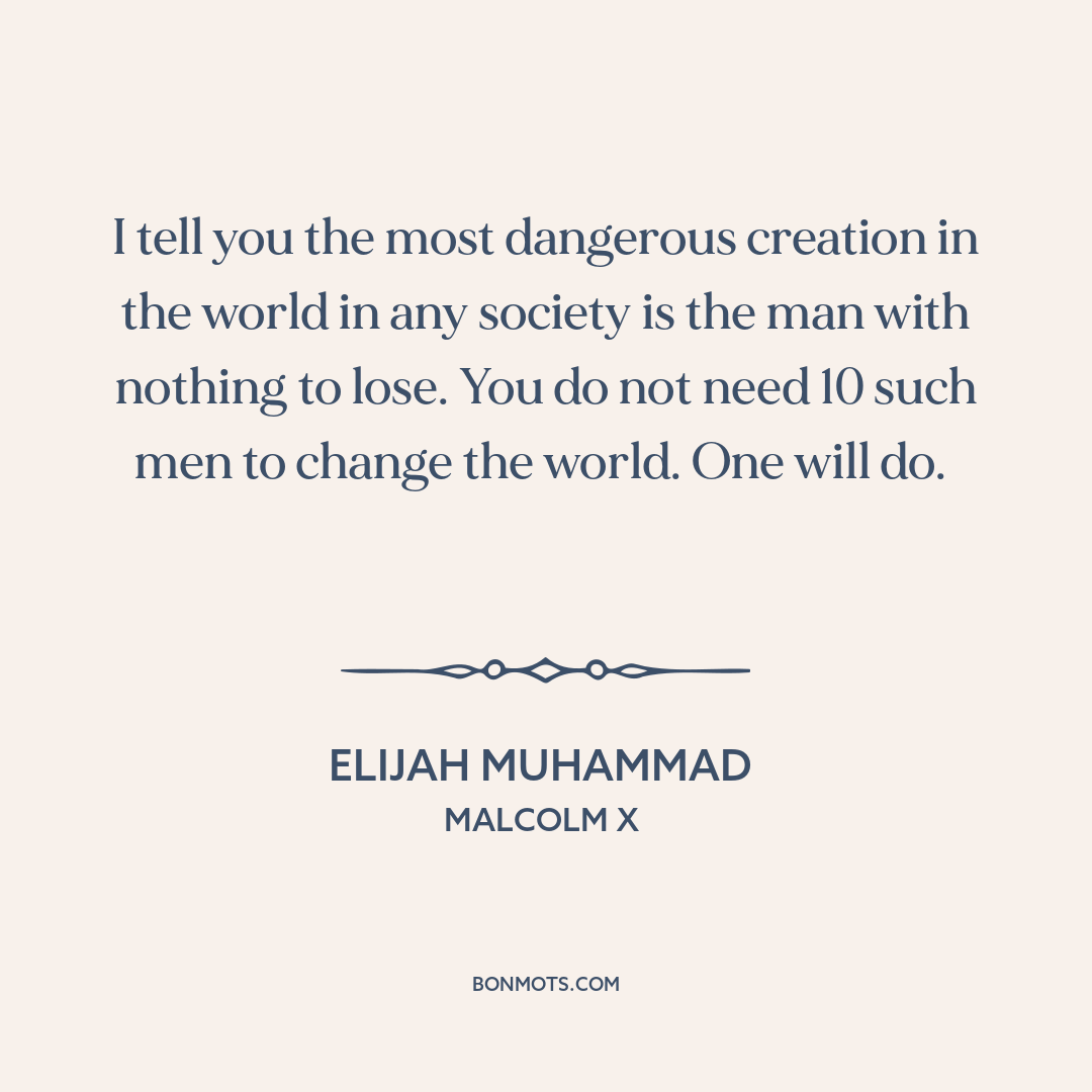 I tell you the most dangerous creation in the world in any society is the man with nothing to lose. You do not need 10 such men to change the world. One will do.
