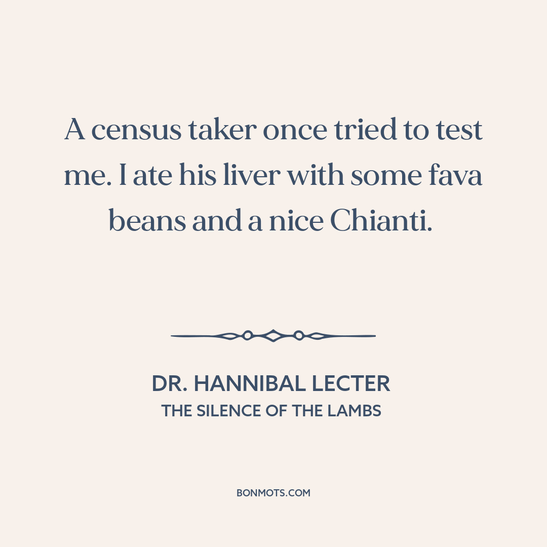 A census taker once tried to test me. I ate his liver with some fava beans and a nice Chianti.