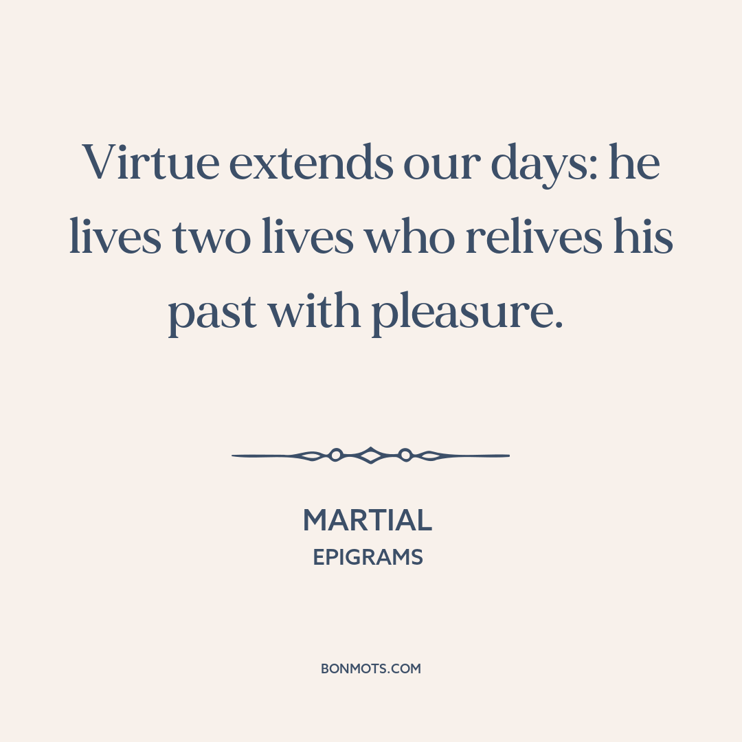 Virtue extends our days: he lives two lives who relives his past with pleasure.
