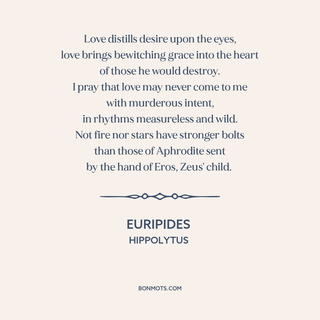 by the hand of Eros, Zeus' child.