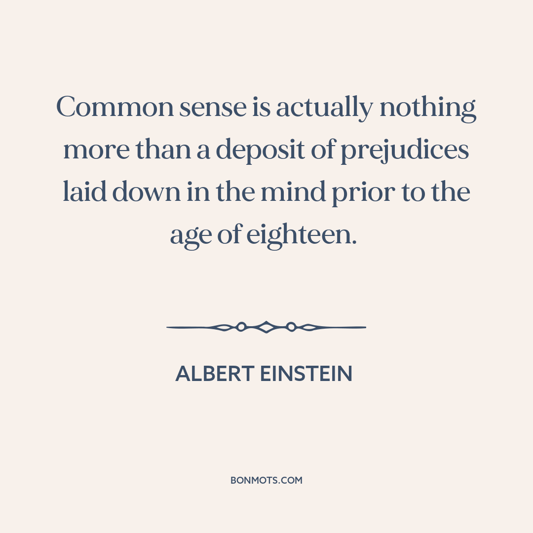 Common sense is actually nothing more than a deposit of prejudices laid down in the mind prior to the age of eighteen.