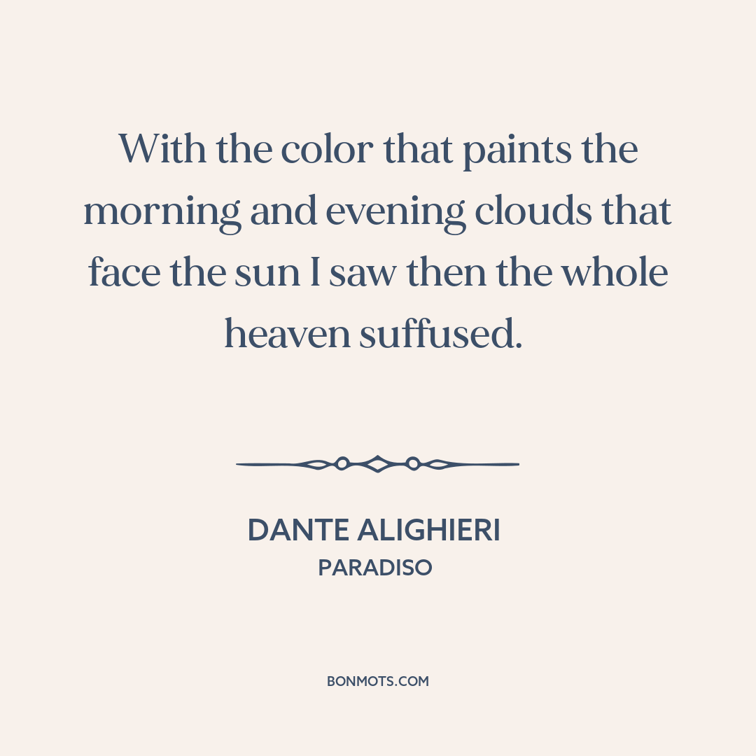 With the color that paints the morning and evening clouds that face the sun I saw then the whole heaven suffused.