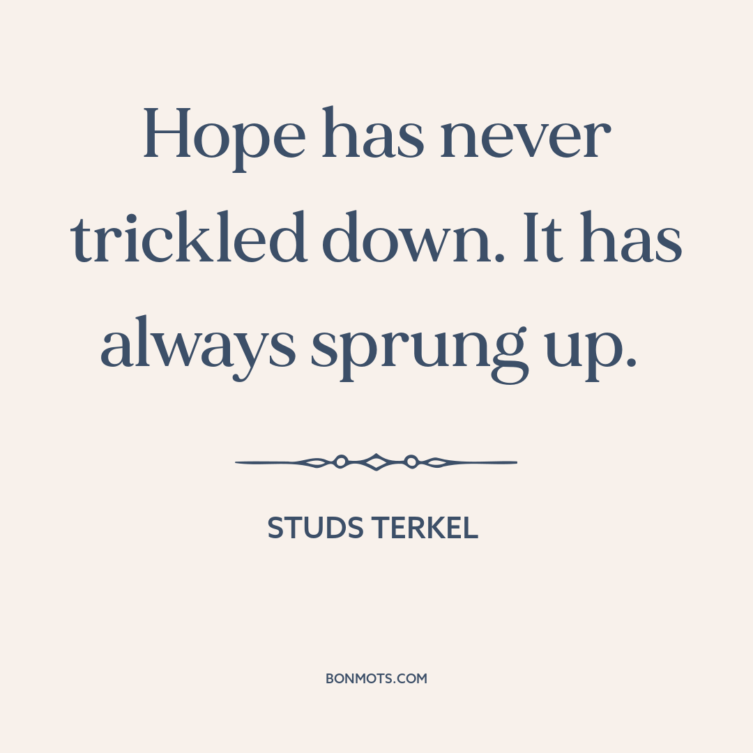 Hope has never trickled down. It has always sprung up.