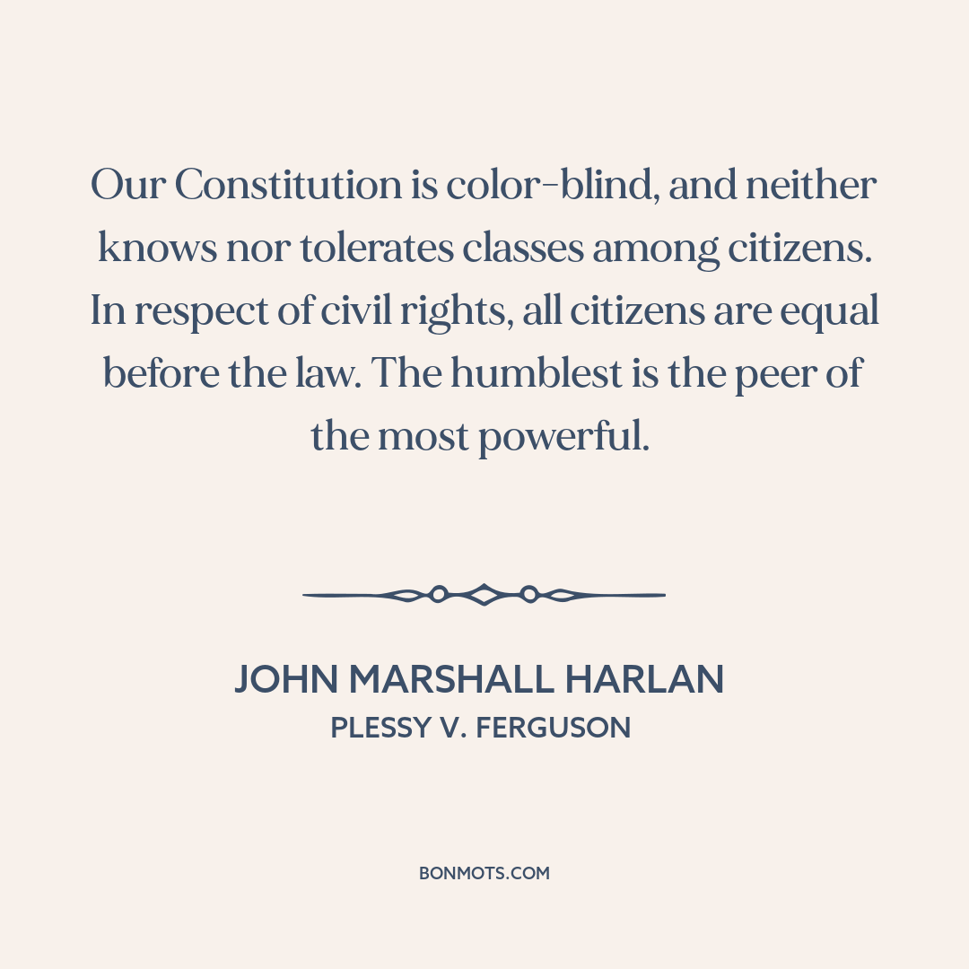 Our Constitution is color-blind, and neither knows nor tolerates classes among citizens. In respect of civil rights, all citizens are equal before the law. The humblest is the peer of the most powerful.