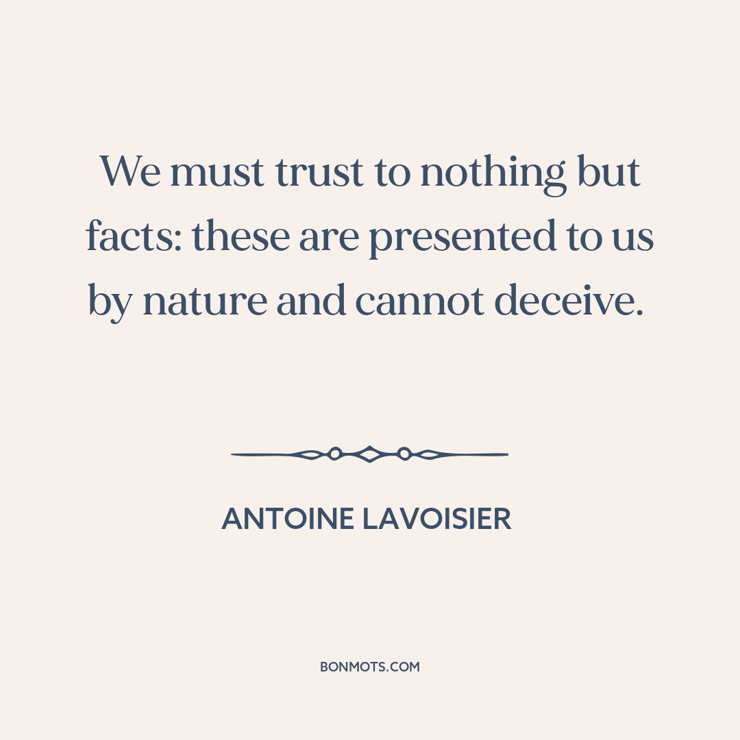 We must trust to nothing but facts: these are presented to us by nature and cannot deceive.