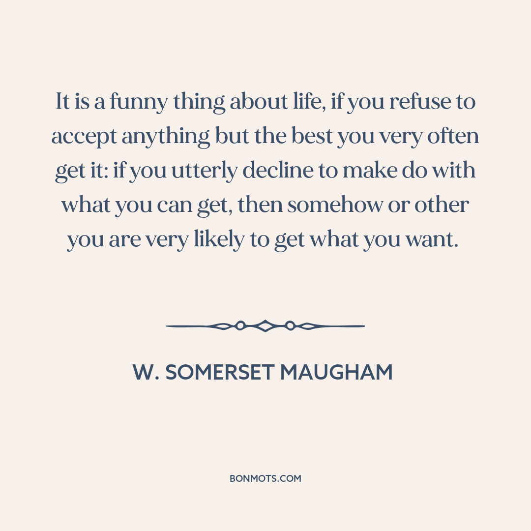 It is a funny thing about life, if you refuse to accept anything but the best you very often get it: if you utterly decline to make do with what you can get, then somehow or other you are very likely to get what you want.