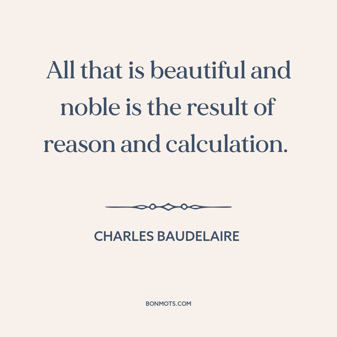 All that is beautiful and noble is the result of reason and calculation.