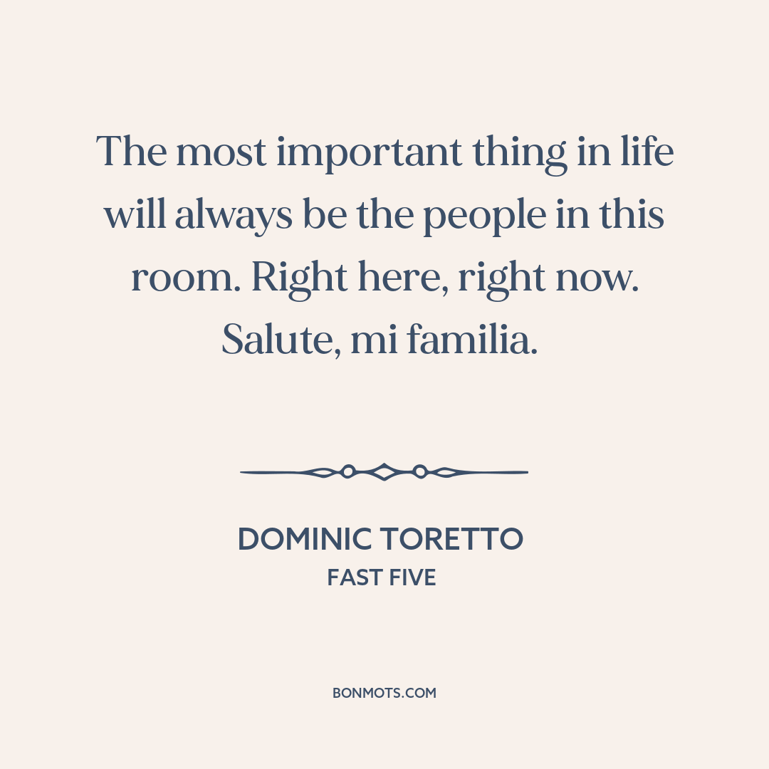 The most important thing in life will always be the people in this room. Right here, right now. Salute, mi familia.