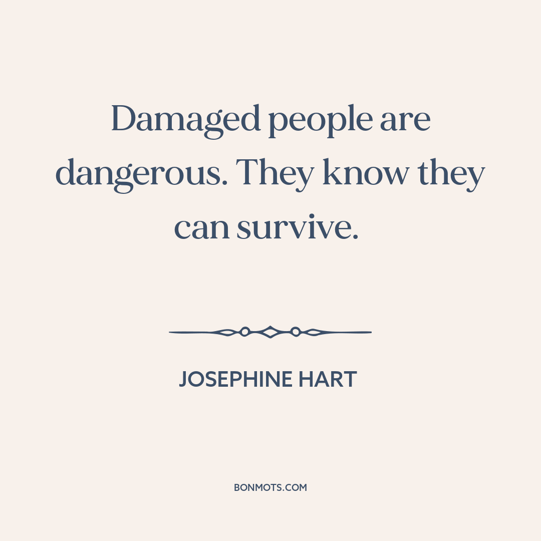 Damaged people are dangerous. They know they can survive.
