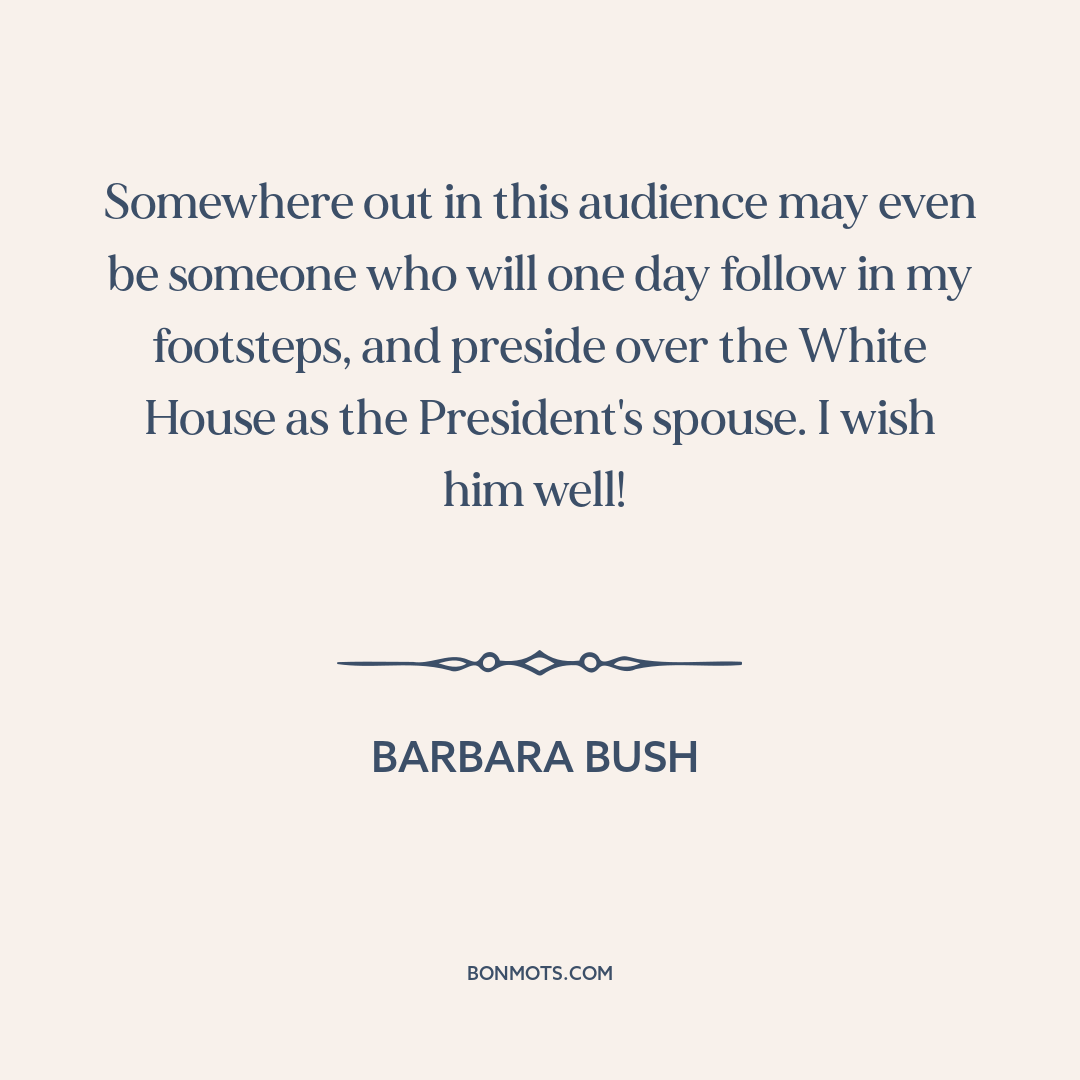 Somewhere out in this audience may even be someone who will one day follow in my footsteps, and preside over the White House as the President's spouse. I wish him well!