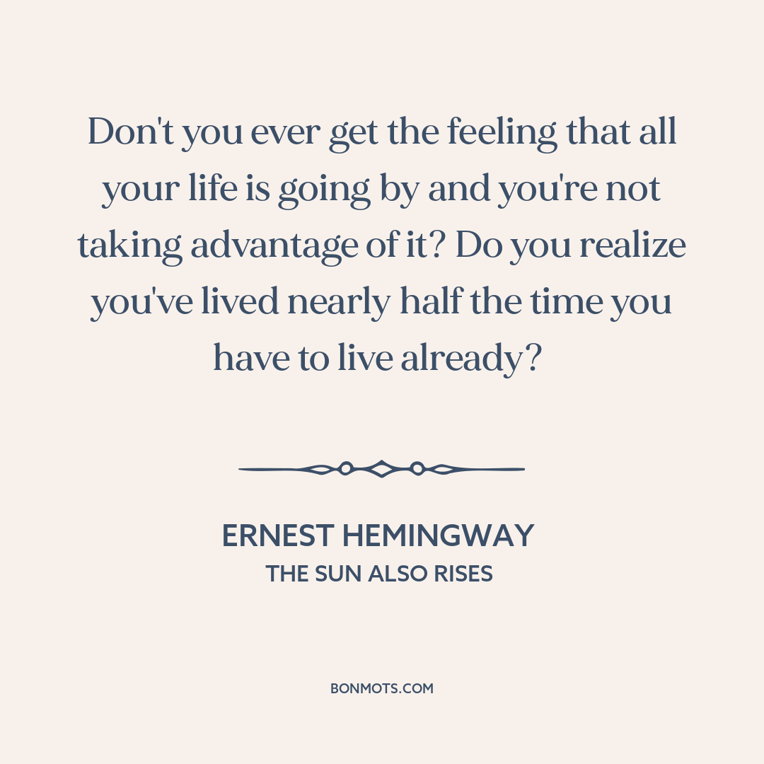 Don't you ever get the feeling that all your life is going by and you're not taking advantage of it? Do you realize you've lived nearly half the time you have to live already?