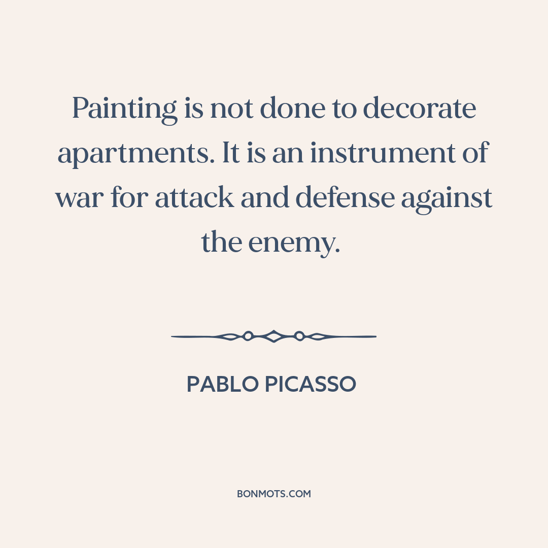 Painting is not done to decorate apartments. It is an instrument of war for attack and defense against the enemy.