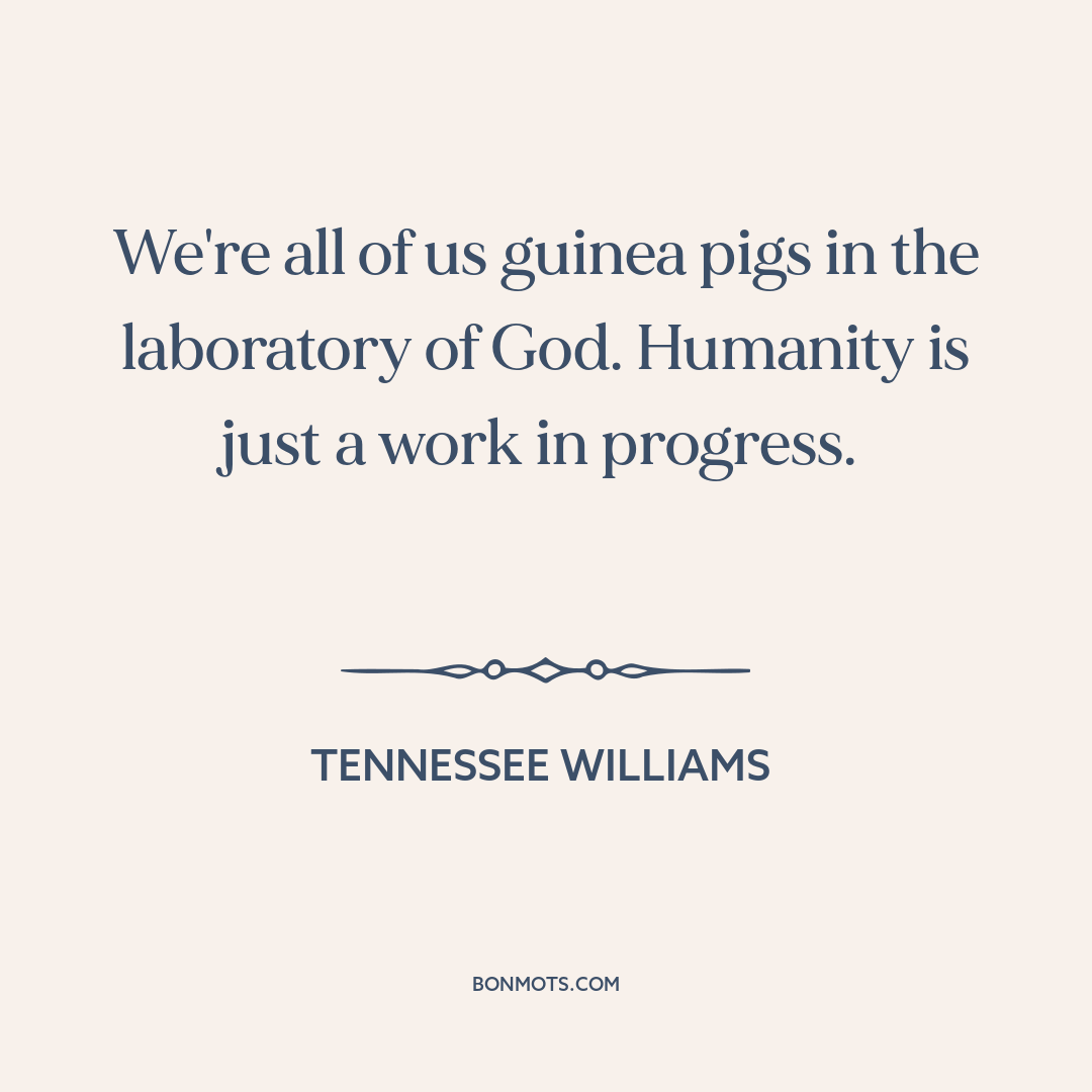 We're all of us guinea pigs in the laboratory of God. Humanity is just a work in progress.