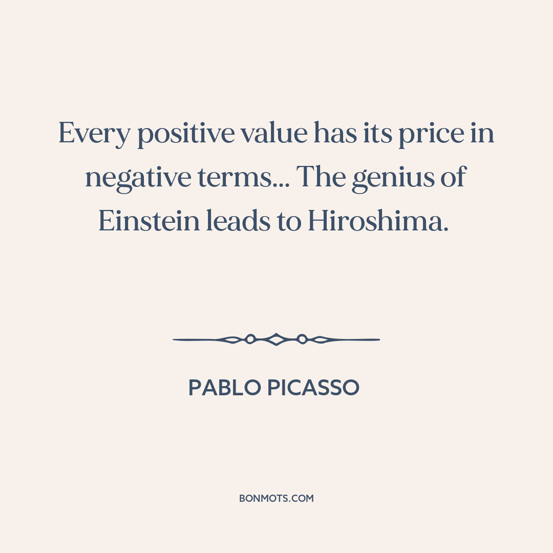 Every positive value has its price in negative terms... The genius of Einstein leads to Hiroshima.