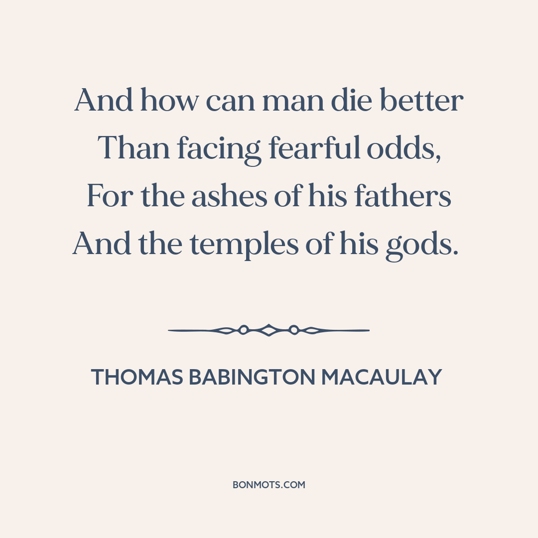 Macaulay, Thomas Babington. "Horatius." Lays of Ancient Rome. London: Longman, Brown, Green, and Longmans, 1842, st. 27.