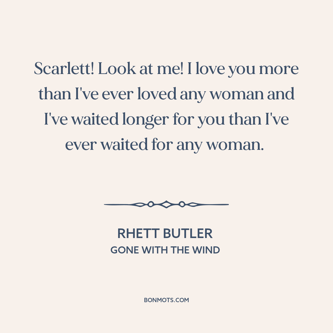 Scarlett! Look at me! I love you more than I've ever loved any woman and I've waited longer for you than I've ever waited for any woman.