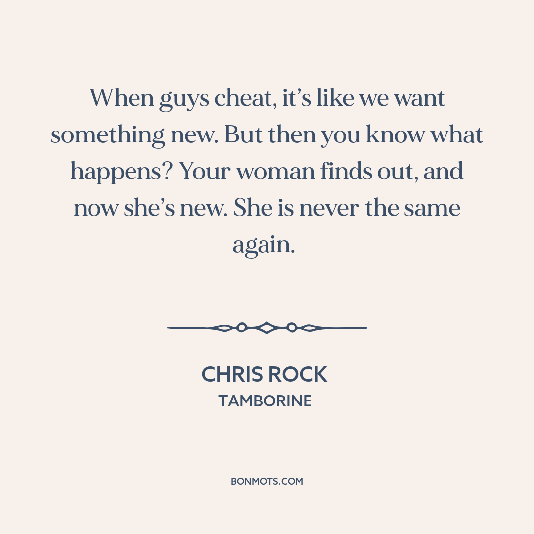 When guys cheat, it’s like we want something new. But then you know what happens? Your woman finds out, and now she’s new. She is never the same again.