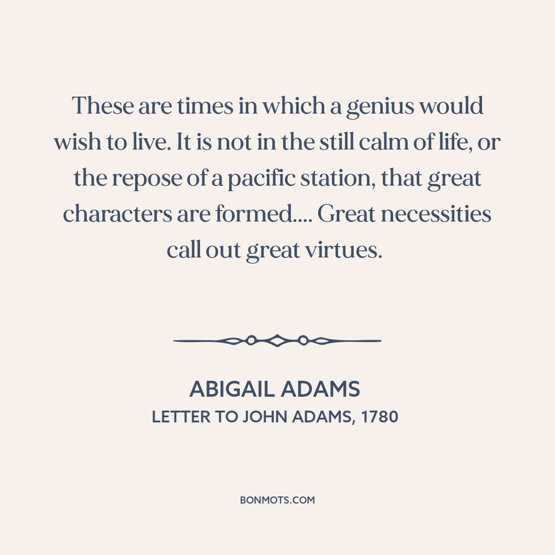 These are times in which a genius would wish to live. It is not in the still calm of life, or the repose of a pacific station, that great characters are formed.... Great necessities call out great virtues.