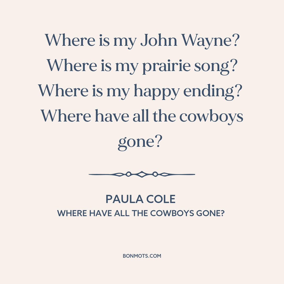 Cole, Paula. "Where Have All the Cowboys Gone?" This Fire. Warner Records/Imago Records, 1996.