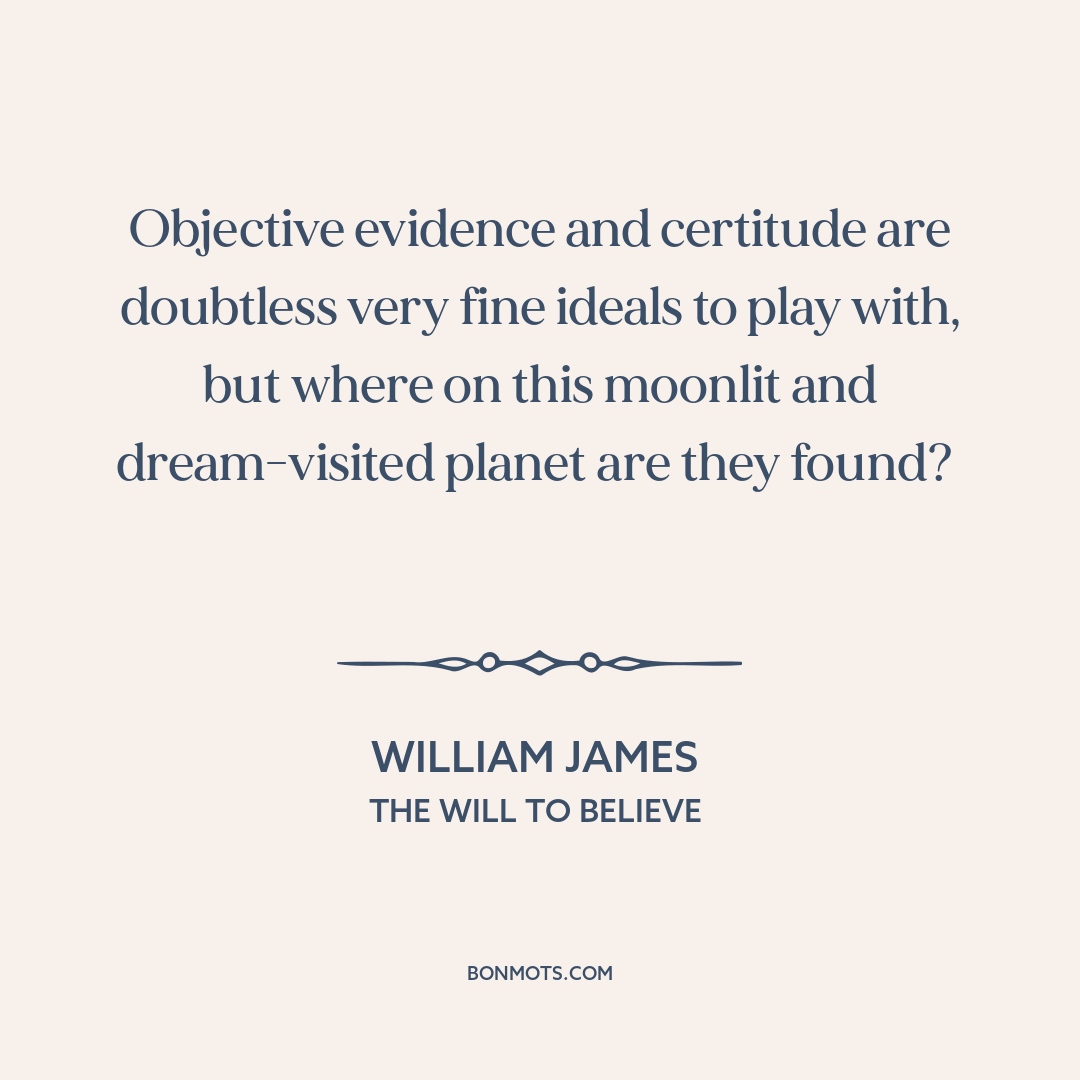 Objective evidence and certitude are doubtless very fine ideals to play with, but where on this moonlit and dream-visited planet are they found?
