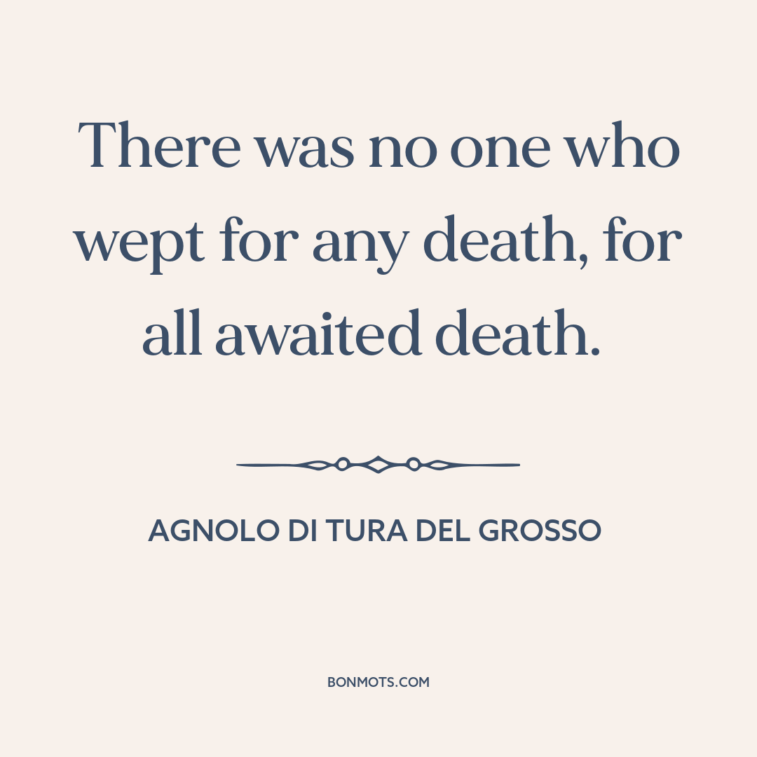 Di Tura del Grosso, Agnolo. "Cronica Maggiore." Quoted in The Black Death: A Turning Point in History?, written by William M. Bowsky. Holt, Rinehart & Winston, 1971.