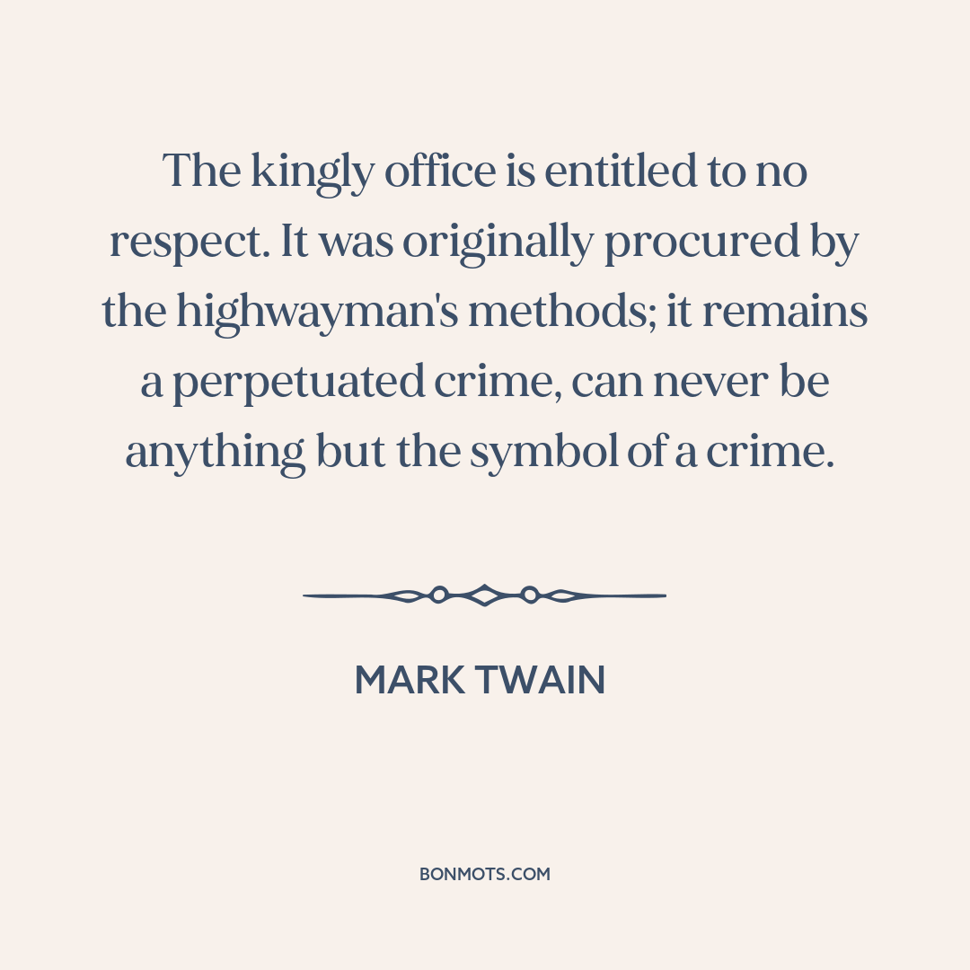 The kingly office is entitled to no respect. It was originally procured by the highwayman's methods; it remains a perpetuated crime, can never be anything but the symbol of a crime.