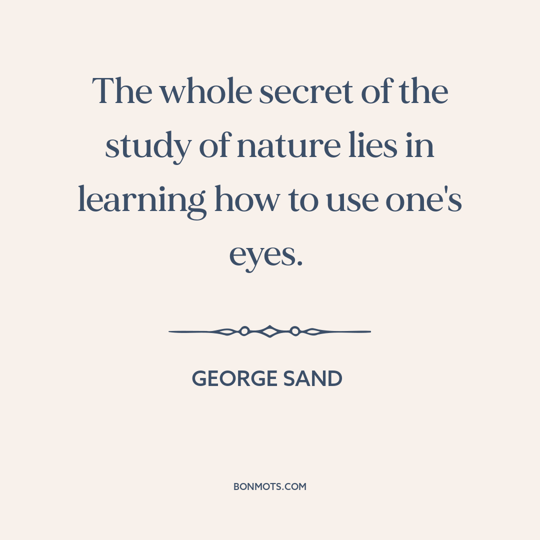 The whole secret of the study of nature lies in learning how to use one's eyes.