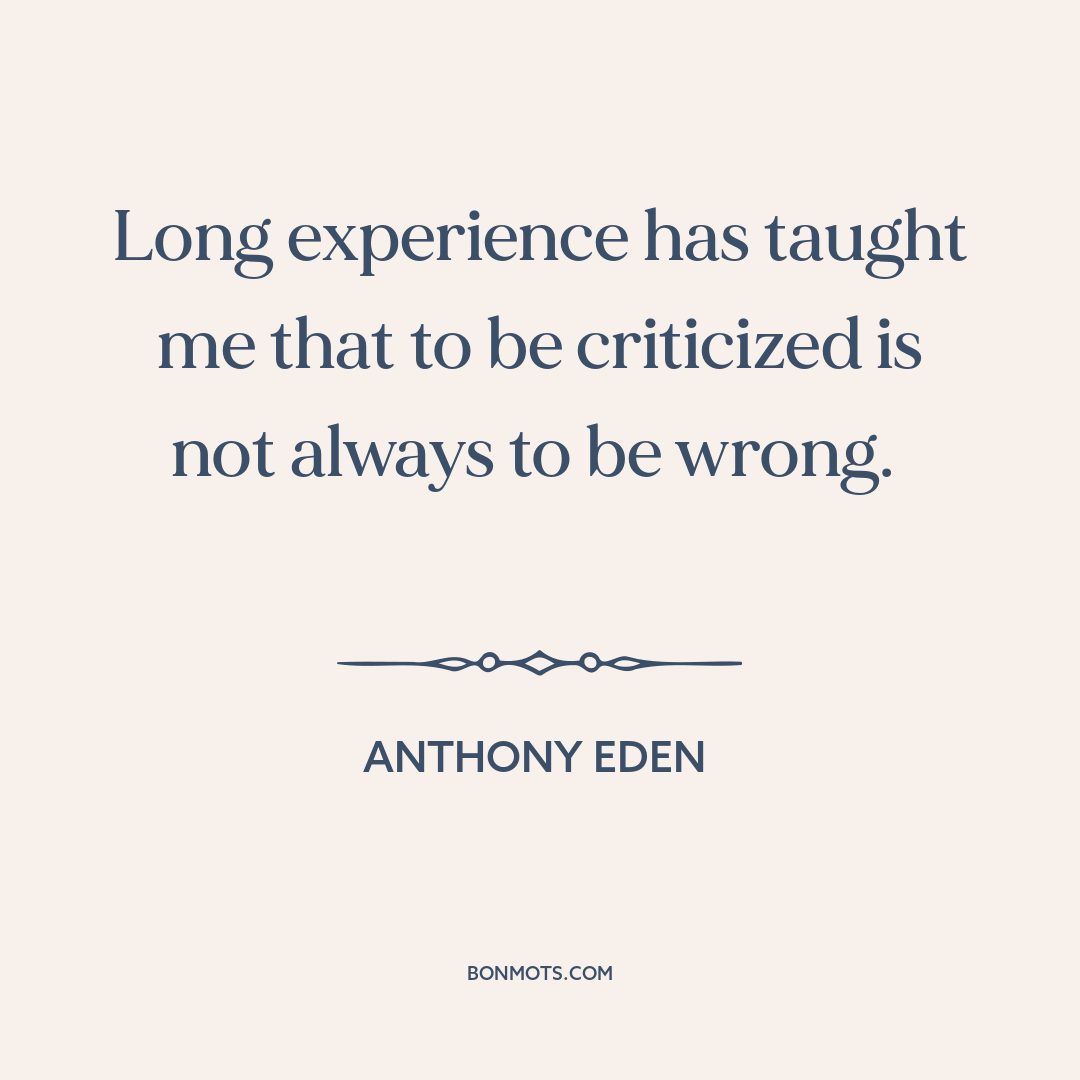 Long experience has taught me that to be criticized is not always to be wrong.